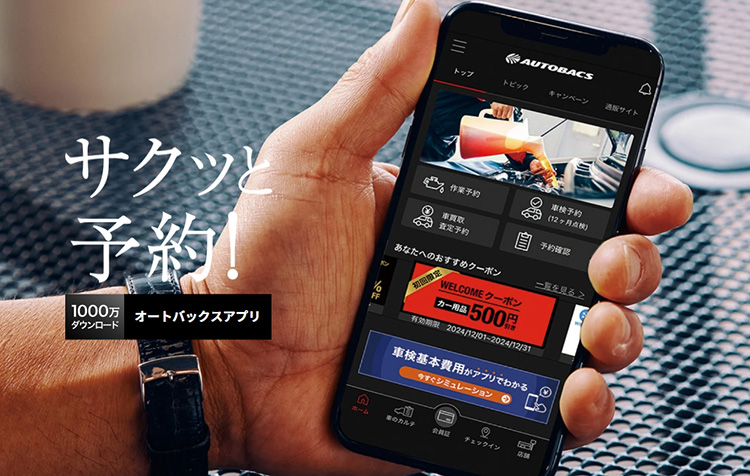 オートバックスアプリは、オイル交換・タイヤ交換・車検などの簡単予約だけでなく、アプリ限定のクーポンやセールのお知らせ、愛車のメンテナンス管理など、デジタル会員証として便利に&お得にご利用いただけます。